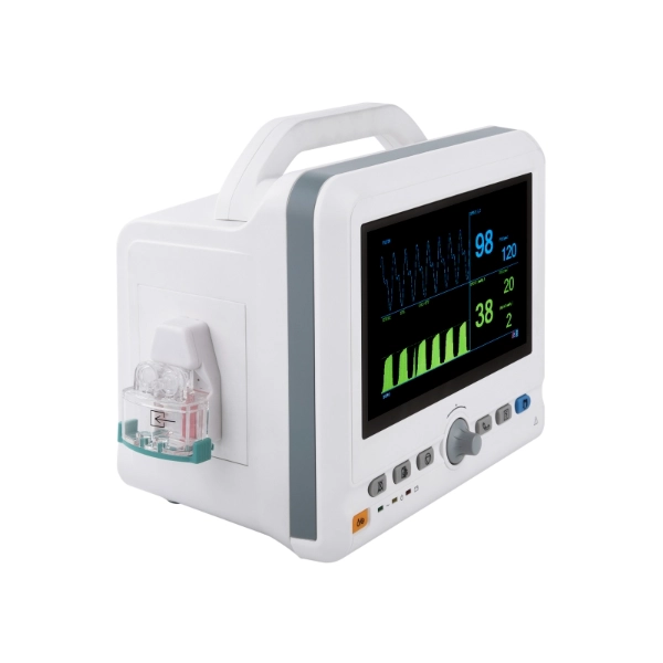 Portable monitor with 7 inch display, monitoring ETCO2 and anesthesia gas (N2O, ENF, HAL, SEV, DES, ISO) concentration, high accuracy, with built-in rechargeable battery, MG2000 has been designed for low tidal volumes with high breath rates for a wide range of clinical applications.